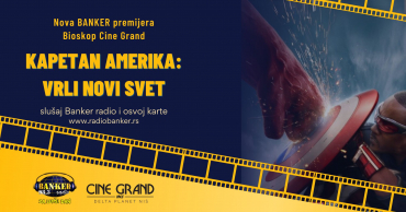 Kako će se Sem Vilson, odnosno glumac Antoni Maki snaći u ovako važnoj ulozi, saznajte 19. februara od 18h, kada vas BANKER radio vodi na još jednu BANKER PREMIJERU – KAPETAN AMERIKA: Vrli novi svet! Dođi i ti u BIOSKOP CINE GRAND u Delta Planetu, da uživamo u novom Marvelovom filmu!
