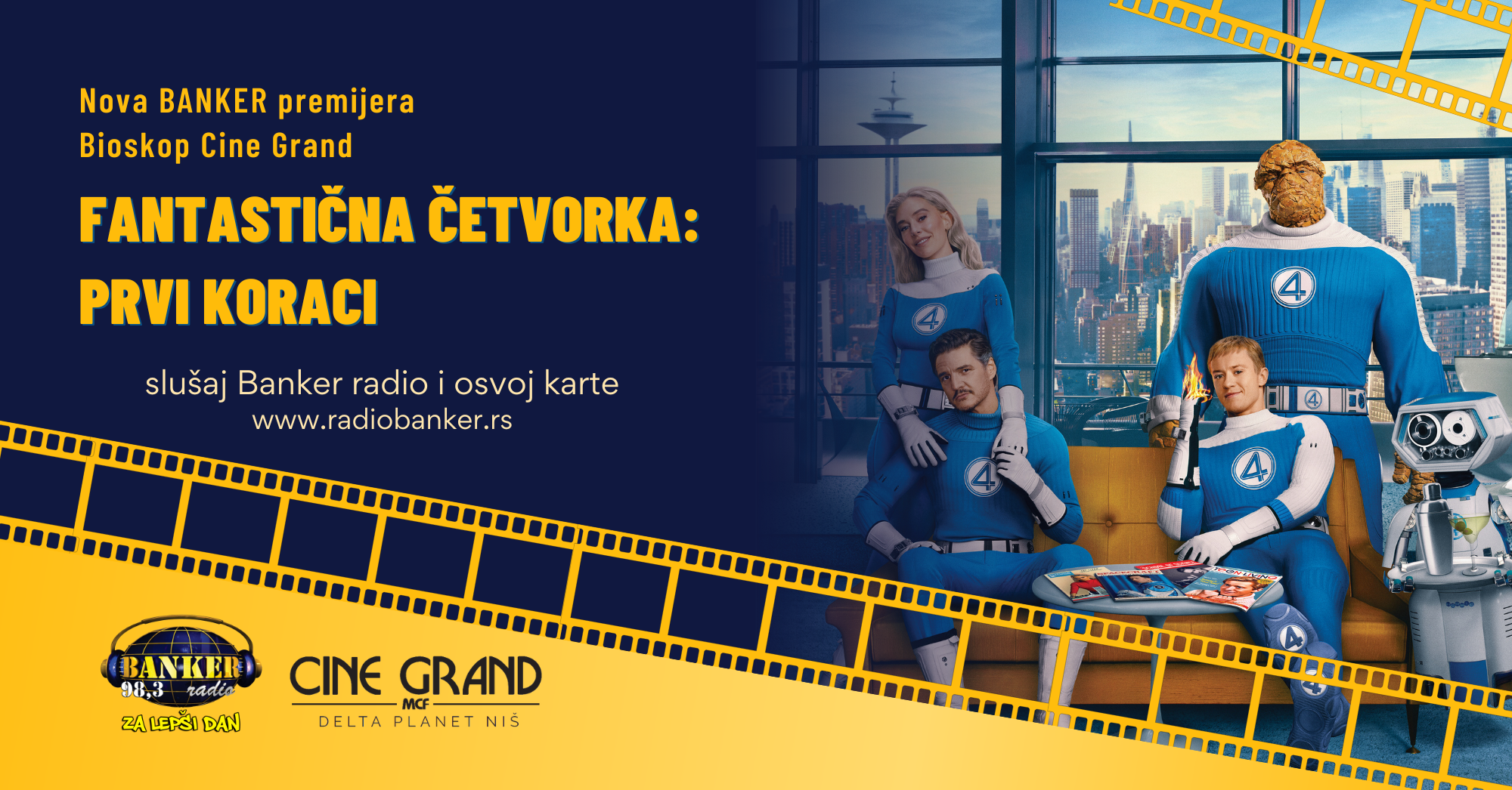 Kako će se astronauti koji su preko noći postali spasioci planete snaći u tim novim ulogama, pojedinačno, ali i kao tim, videćete na novoj BANKER PREMIJERI – FANTASTIČNA ČETVORKA: PRVI KORACI! Dođi i ti u BIOSKOP CINE GRAND u Delta Planetu 30. jula u 18h da uživamo u novom Marvelovom ostvarenju!