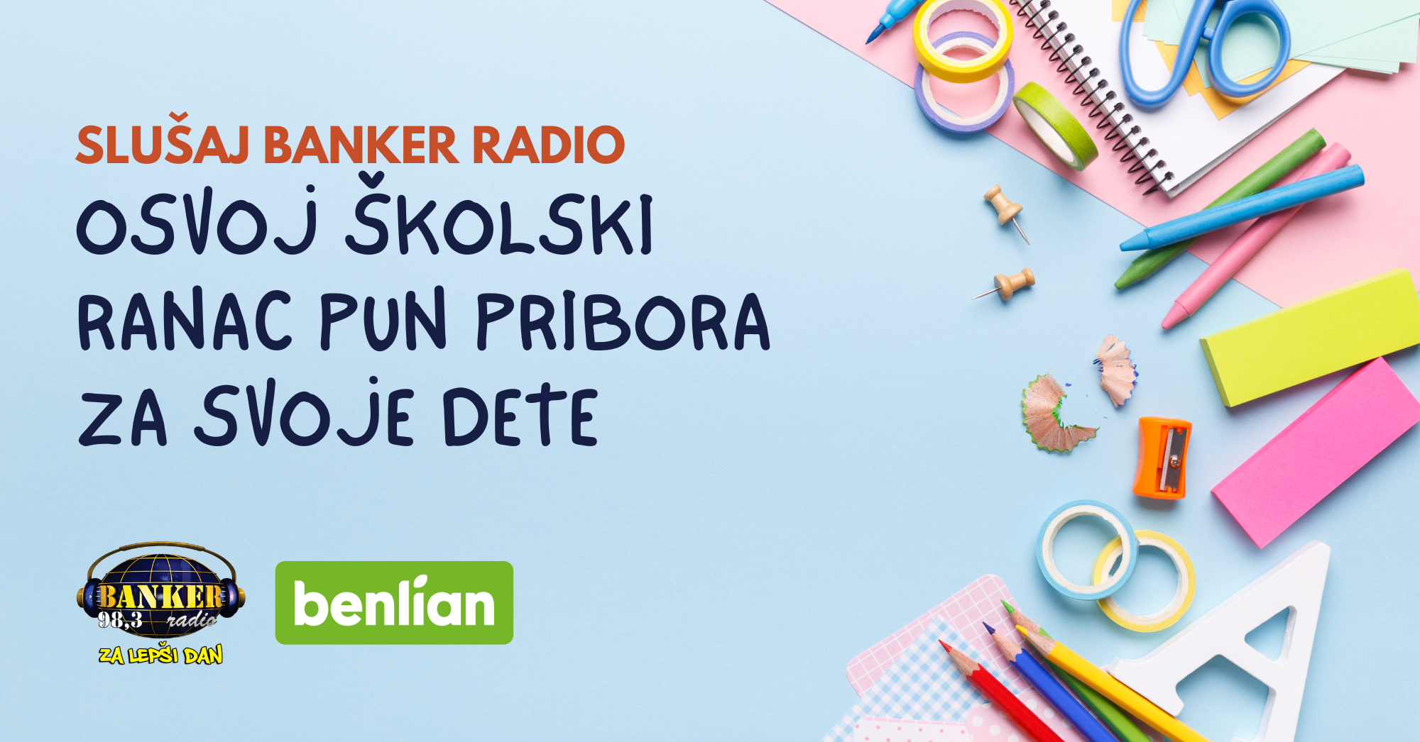 BANKER radio i niška kompanija Benlian Foods poklanjaju vam 150 evra namenjenih za kupovinu ranca i školske opreme za vase školarce.