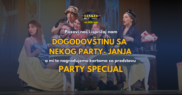 Predstavu ‘The Party Specijal’ možete pogledati u Narodnom pozorištu, 24. aprila sa početkom u 20h. Karte su dostupne na sajtu tickets.rs.