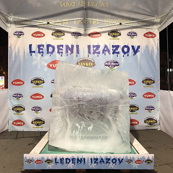 Svima koji su u subotu 10. avgusta prolazili pored Kalče pažnju je privlačio jedan neobičan objekat! Nišlije, ali i mnogobrojni gosti našeg grada, prilazili su i slikali se sa ogromnom ledenom kockom da bi učestvovali u ledenom izazovu, ali i da bi rashladili ruke u dodiru sa njom.