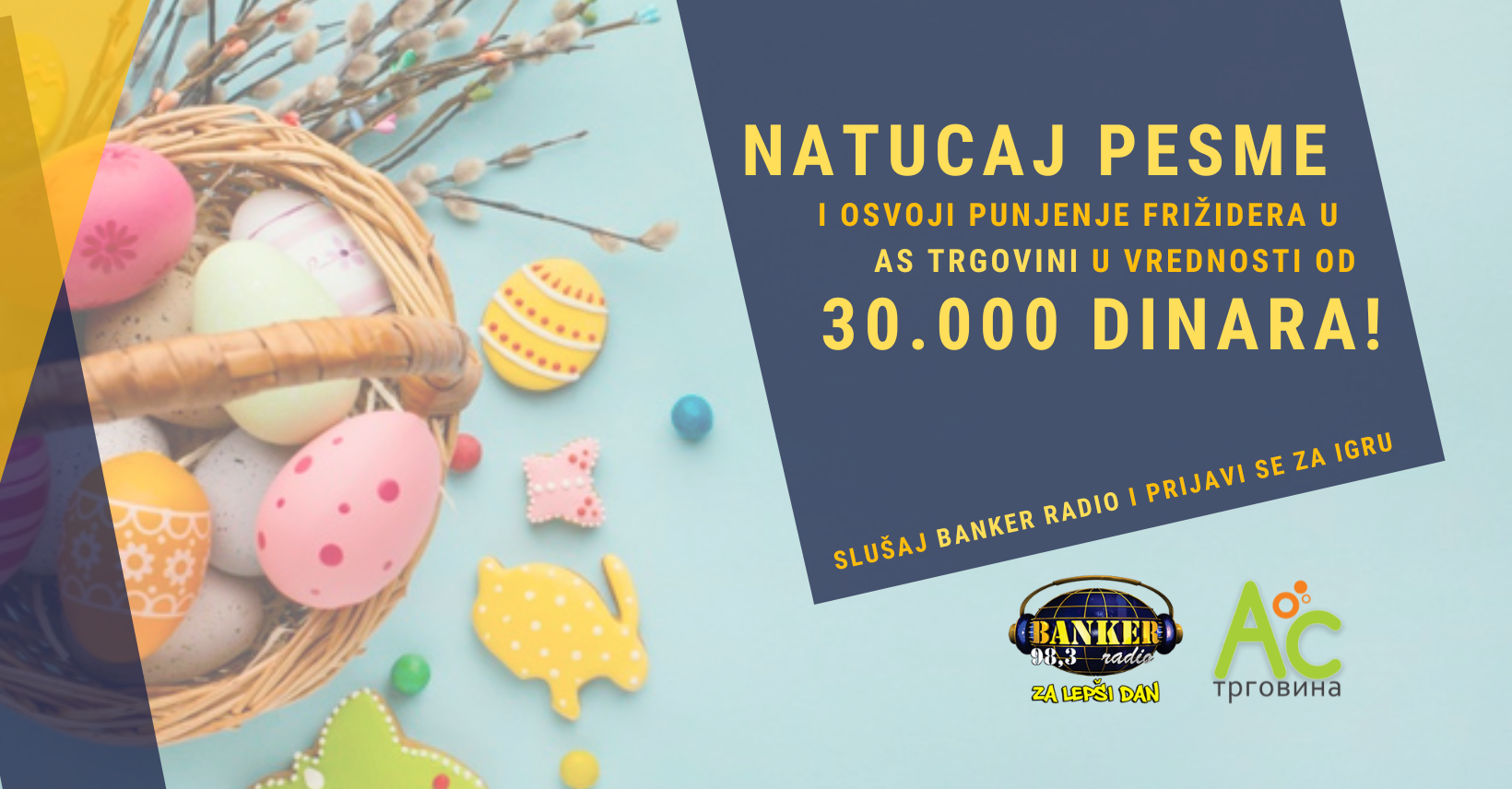 Uskrs je vreme slavlja, a ne brige. Dozvoli da mi brinemo o tvom frižideru! BANKER radio će napuniti tvoj frižider namirnicama iz AS trgovine u vrednosti od čak 30.000 dinara!