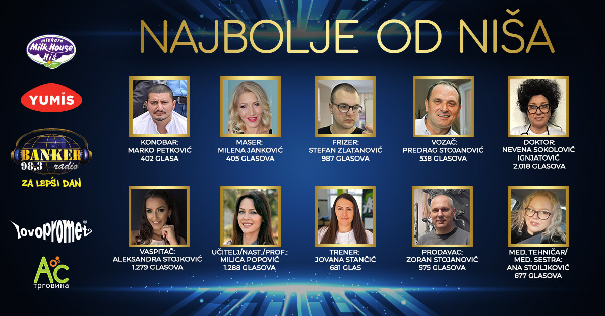 Došao je trenutak da saopštimo pobednike izbora „Najbolje od Niša“ iz 2021. godine. Za početak želimo da kažemo najvažnije – svi vi, vas 237 koji ste nominovani za „Najbolje od Niša“ za nas ste i pobednici! Onog trenutka kada je neko poželeo da vas nominuje, kada ste vi bili prva asocijacija na pomen određenog zanimanja, već ste dobili afirmaciju o sopstvenoj vrednosti i važnosti za naš grad i za one koji žive u njemu.