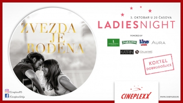 „Zvezda je rođena“ – Treći rimejk filma „Zvezda je rođena” iz 1937. godine dolazi nam u potpuno novom ruhu, osvežen rediteljskim debijem Bredlija Kupera i glasom višestruko nagrađivane muzičke zvezde današnjice, Lejdi Gage. Priča o ljubavi, spletkama i ljubomori razgaliće vas na Ladies night događaju, u sredu 3. oktobra od 20 časova. Film govori o tragičnoj ljubavi između iskusnog muzičara na zalasku karijere i mladoj pevačici u usponu. Obiluje fantastičnom originalnom muzikom koju je pisao sam Kuper, a sve su pesme u filmu snimane uživo.