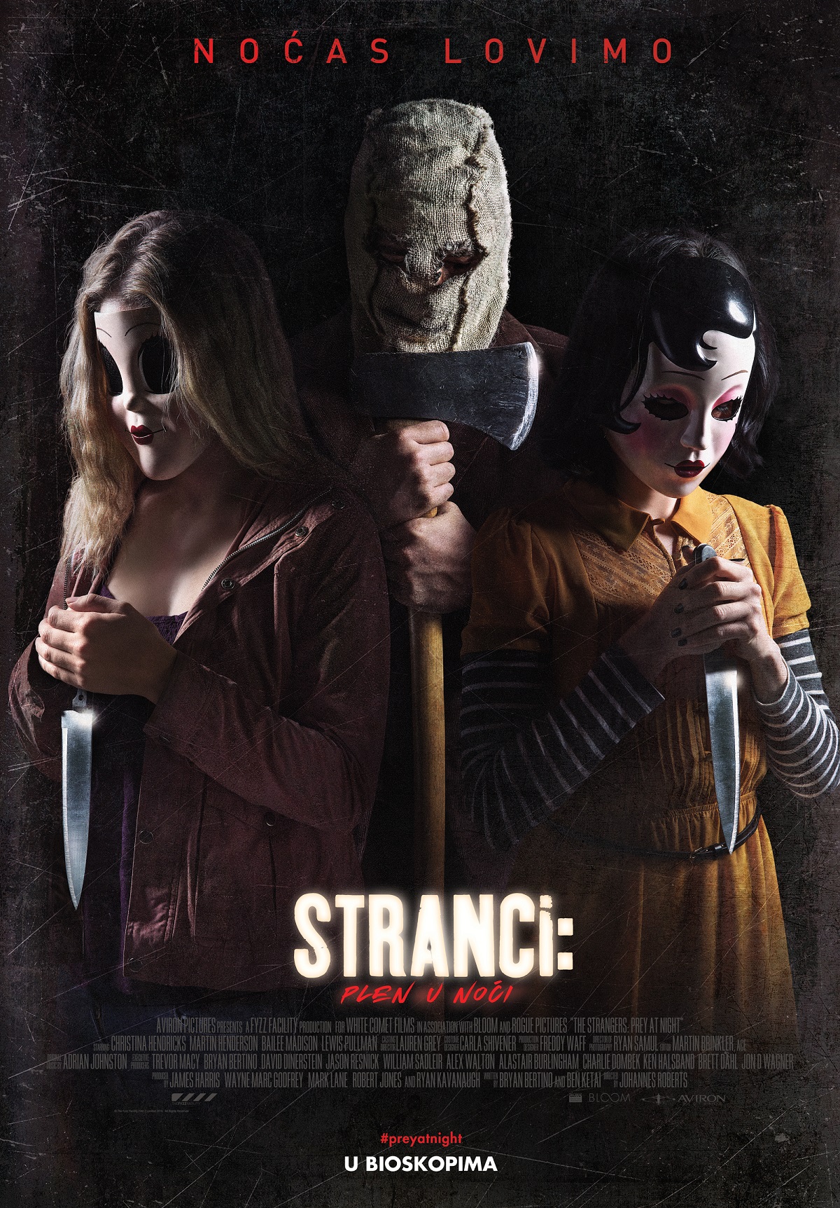 „Stranci: Plen u noći”– Nastavak uspešnog horor hita Stranci (The Strangers) iz 2008. godine. U centru dešavanja je četvoročlana porodica, koja se zbog finansijske situacije seli u izolovanu kućicu. Nedugo nakon doseljenja troje nepoznatih ljudi počinju da ih maltretiraju, a borba za život tek počinje.